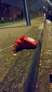 Blind Call is the latest street game we’ll be running this Tuesday. We have two, bright red, old style landline telephones which are connected. We will place them on two street benches round the corner from each other.