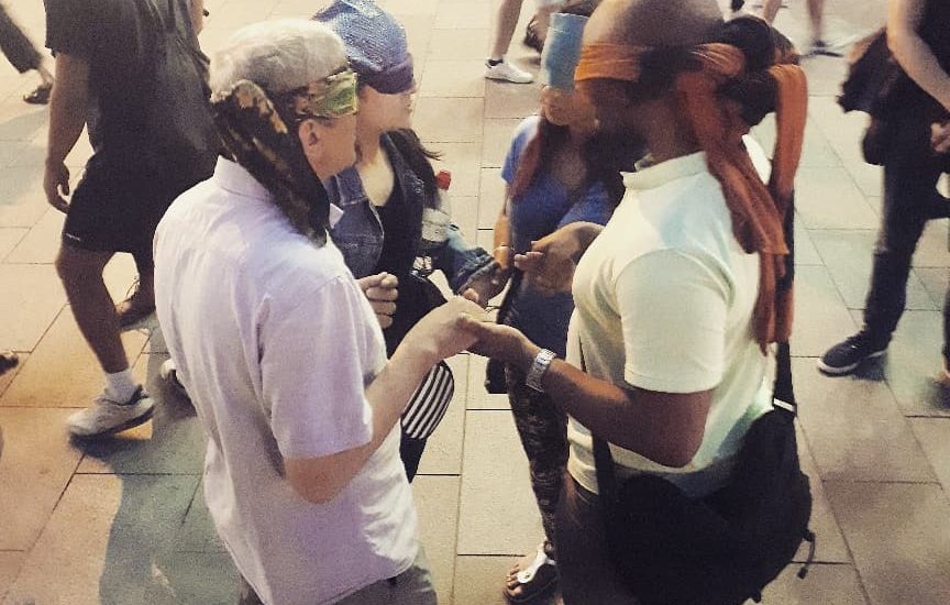 Strangers lose their eyes Posted on August 21, 2019September 2, 2019 As the crowd races past, four strangers spend time together, without their eyes, and listen deeply. This was the scene at Blind Mate recently in Leicester Square…